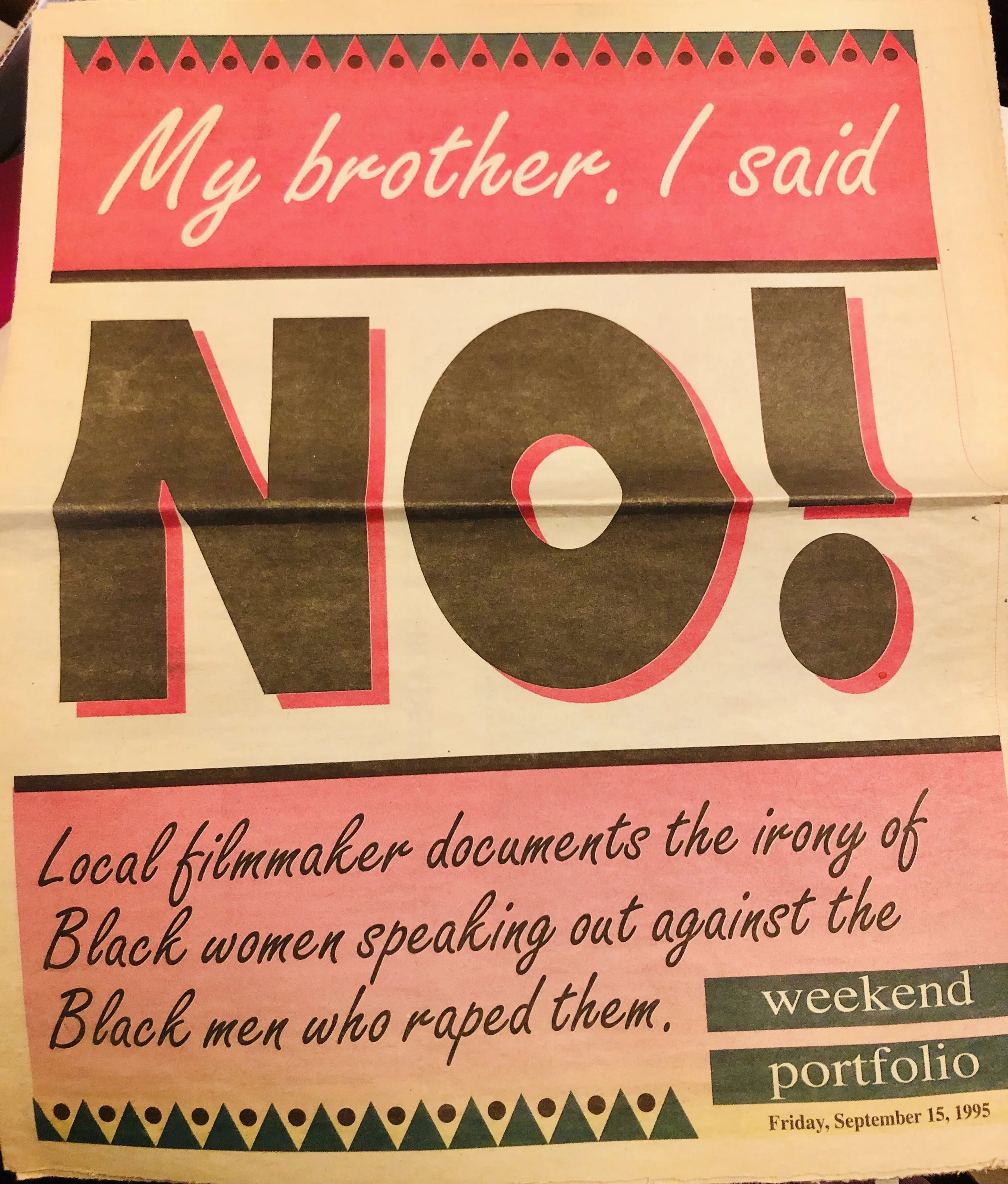 The making of NO! was the cover story in the September 15, 1995 weekend portfolio in The Philadelphia Tribune. The Tribune is the oldest continuously published African-American newspaper in the U.S.
