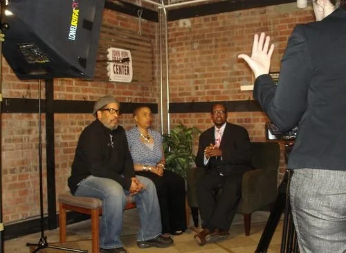Michael Simmons, Aishah Shahidah Simmons, and Dr. Mark Anthony Neal on Left of Black, Season 2, Episode 26 (photo credit: Linda Carranza)